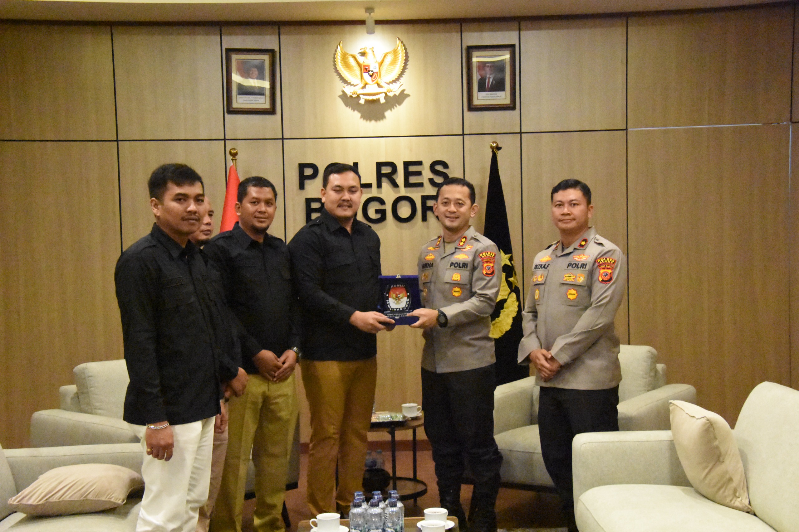 Dalam kegiatan yang berlangsung pukul 09.20 WIB tersebut, turut hadir jajaran pejabat utama Polres Bogor dan para Komisioner KPU Kabupaten Bogor, termasuk Sekretaris dan staf teknis KPU.