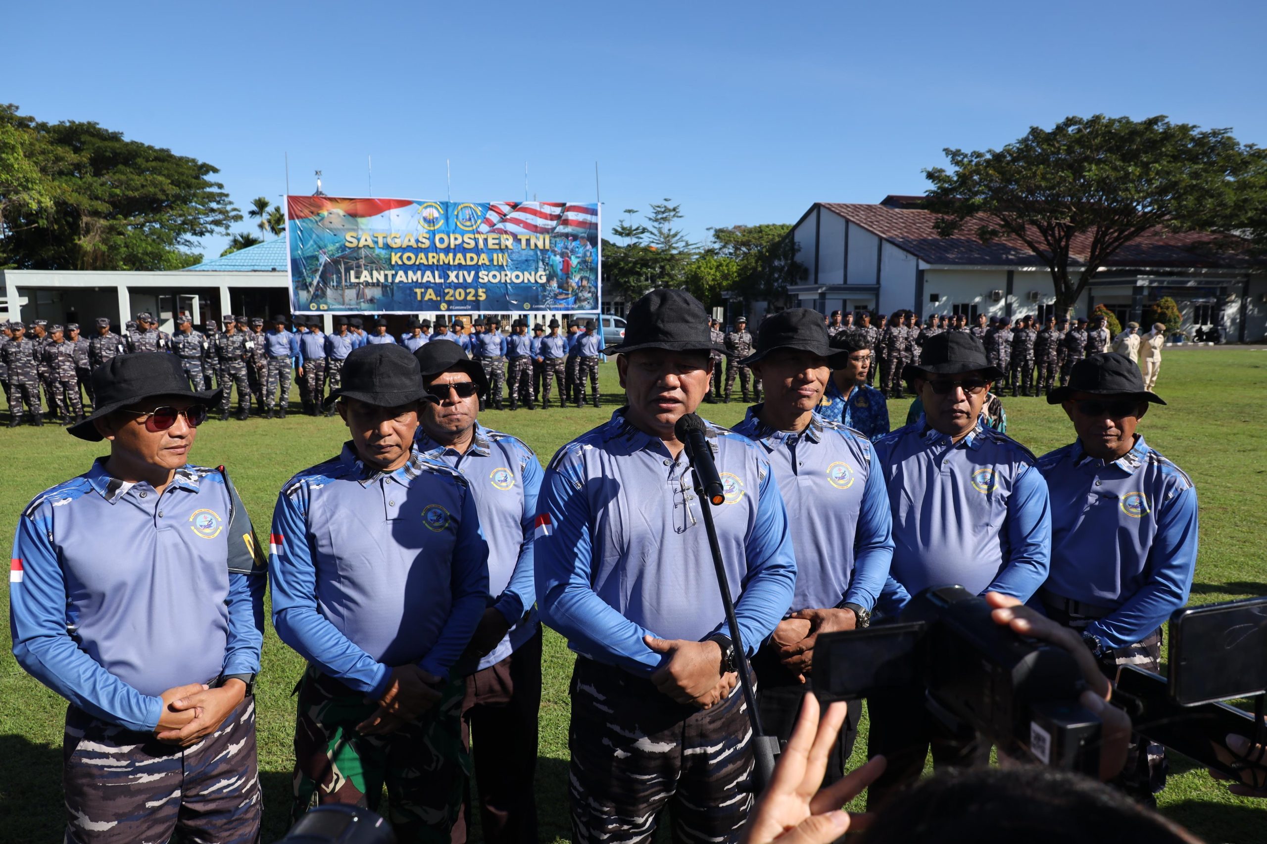 KOTA SORONG PBD, BUSERJATIM.COM GROUP (7/8/25) — Panglima Komando Armada (Pangkoarmada) III, Laksamana Muda TNI Hersan, S.H., M.Si., M.Tr. Opsla., selaku Pangkoopster Matra Laut secara resmi membuka Satgas Operasi Teritorial (Opster) TNI Tahun Anggaran 2025 di wilayah Daerah Otonomi Baru (DOB) Papua. Upacara pembukaan berlangsung khidmat di Lapangan Apel Markas Komando Lantamal XIV, Kota Sorong, dengan dihadiri sejumlah pejabat daerah dan unsur TNI/Polri, (6/8).