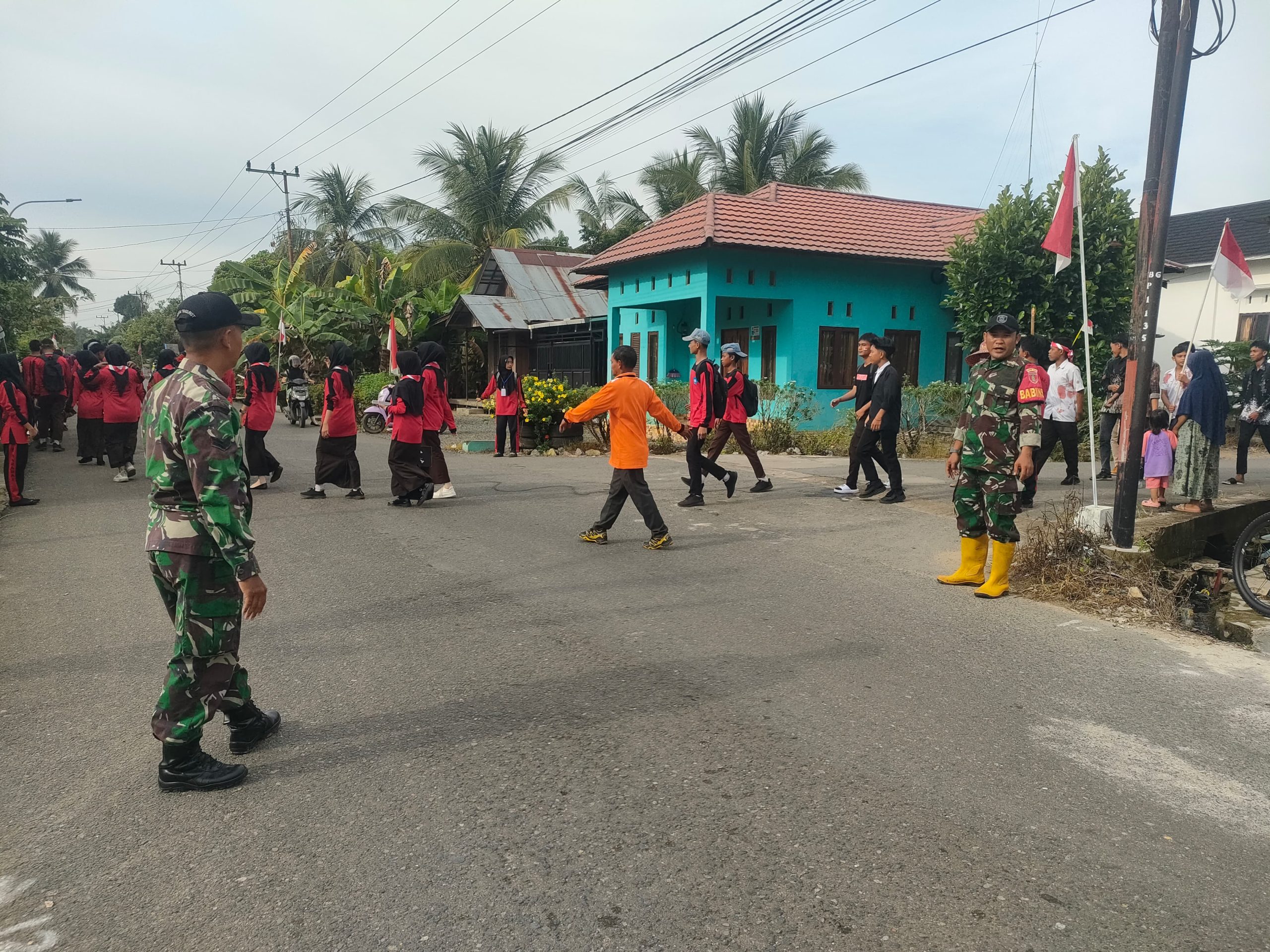 BARABAI, BUSERJATIM.COM GROUP – Babinsa Koramil 1002-05/Pandawan melaksanakan pengamanan kegiatan jalan santai yang diikuti oleh siswa-siswi SMA Negeri 8 Pandawan dalam rangka memeriahkan HUT ke-80 Kemerdekaan Republik Indonesia, Sabtu (23/8).