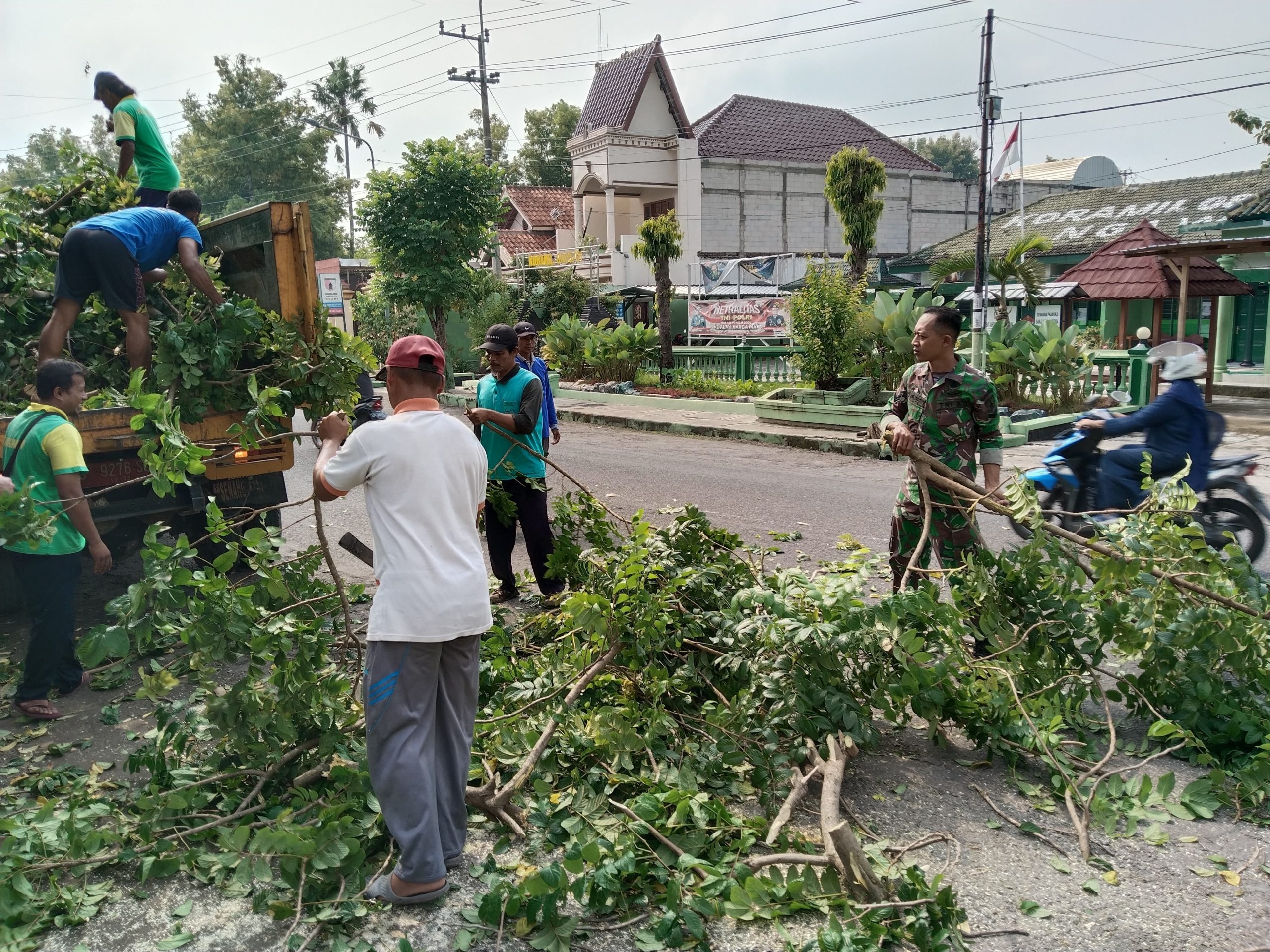 Disampaikan, saat ini Timnya dan Anggota Koramil 0805/01 Ngawi secara bertahap sudah menebang pohon yang kondisinya sudah membahayakan.