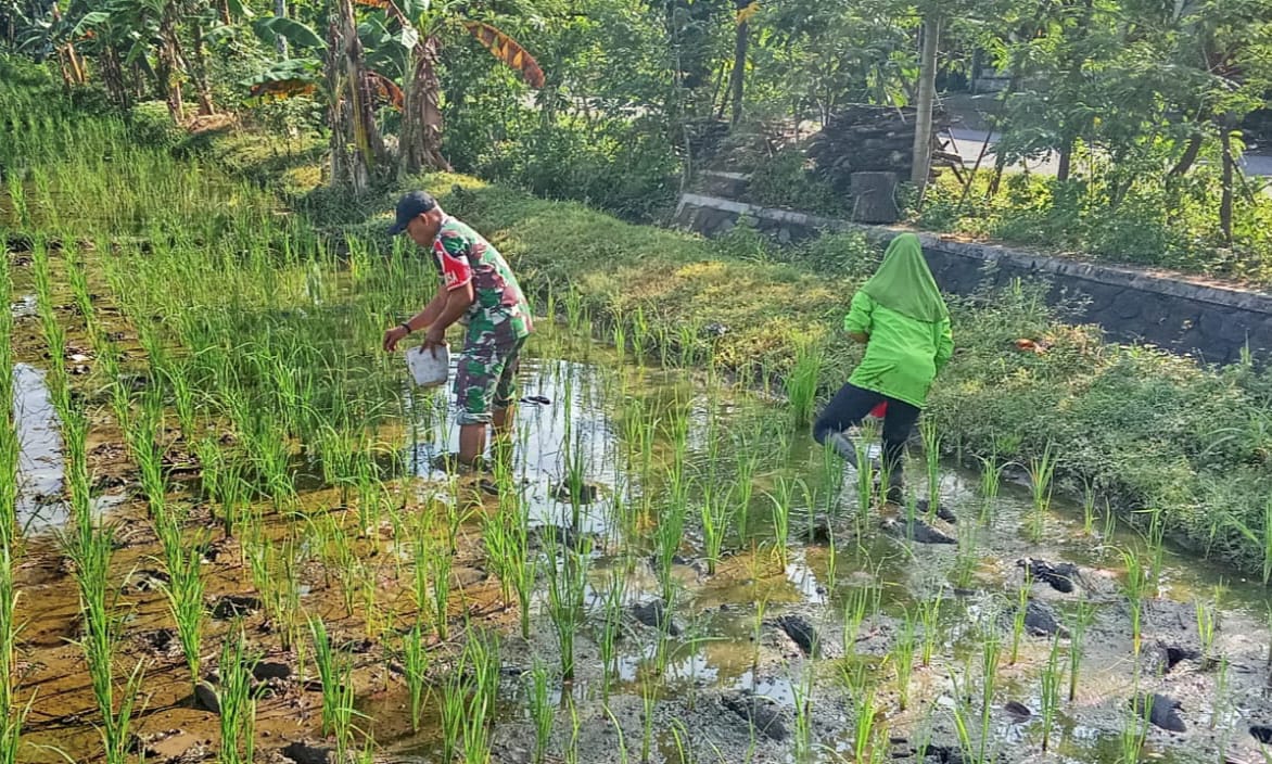 Berbagai macam kegiatan yang dilakukan dalam pendampingan dan pengawealan tersebut diantaranya membantu memupuk tanaman padi seperti yang dilakukan Serda Dwi Putra anggota Koramil Tipe B 0802/15 Mlarak, Kodim 0802/Ponorogo yang sehari hari bertugas menjadi Babinsa Desa Nglumpang Kecamatan Mlarak Kabupaten Ponorogo.
