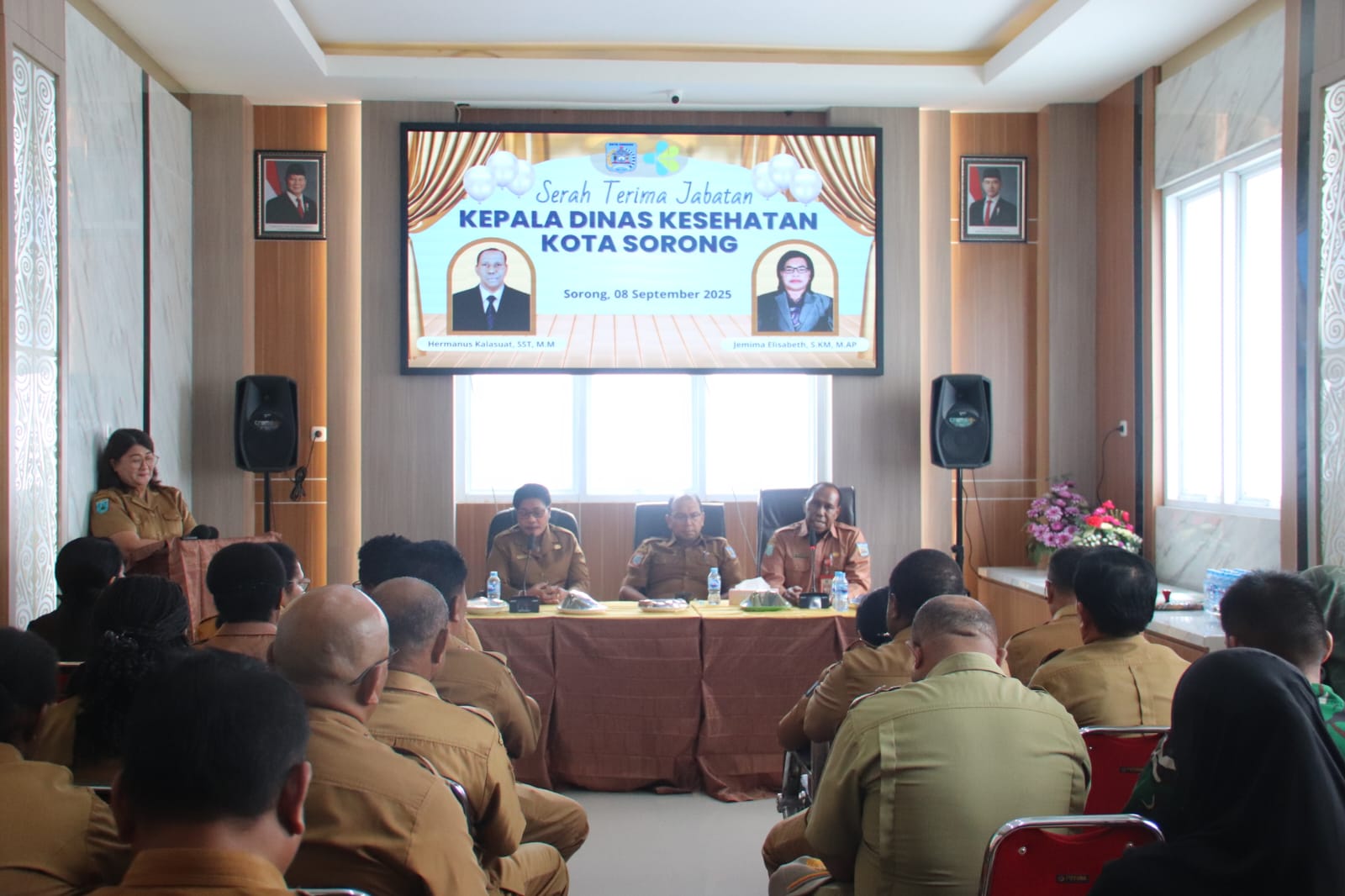 Serah terima jabatan ini turut dihadiri oleh berbagai pihak, mulai dari pejabat struktural, kepala puskesmas, direktur rumah sakit pemerintah dan swasta, hingga unsur Pemerintah Kota Sorong yang diwakili oleh PLT Sekda, Rudy Laku, S.Pi.