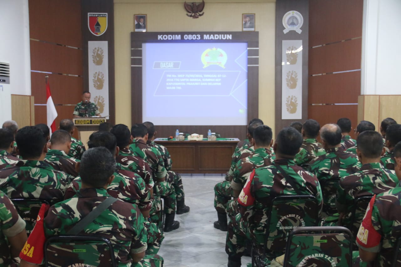 Kasdim 0803/Madiun, Mayor Inf Suwandi, dalam sambutannya menyampaikan bahwa kegiatan ini menjadi momen penting untuk meningkatkan kemampuan dan pemahaman seluruh personel dalam menjalankan tugas kewilayahan secara profesional dan bertanggung jawab.
