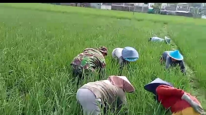 Kegiatan ini dilakukan sebagai bentuk kepedulian Babinsa terhadap peningkatan hasil pertanian sekaligus mendukung program pemerintah dalam menjaga ketahanan pangan nasional. Sertu Sumarno tampak berbaur dengan para petani, ikut mencabut gulma yang tumbuh di antara tanaman padi agar pertumbuhannya lebih optimal.