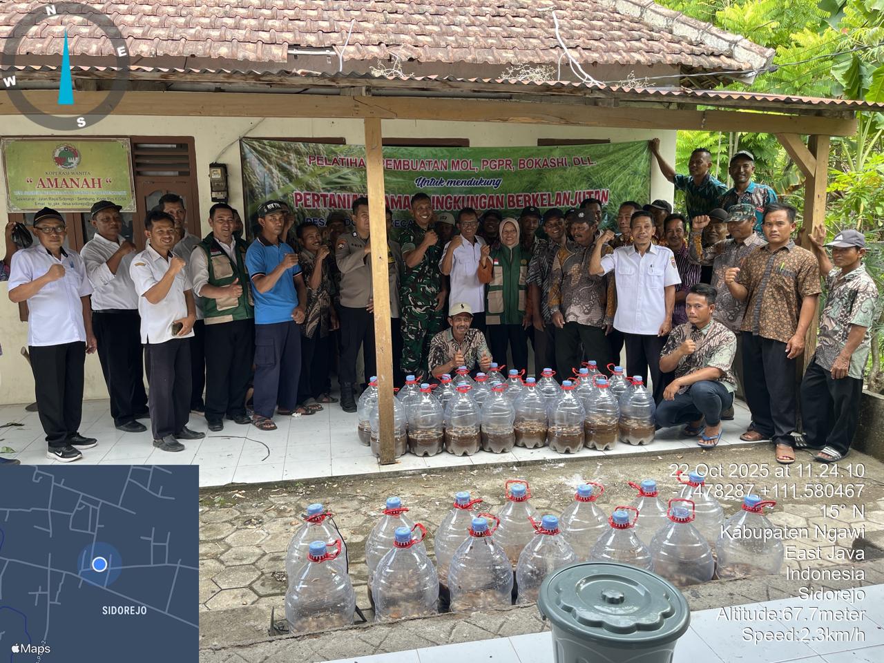 NGAWI – Babinsa Koramil 0805/05 Karangjati Kodim Ngawi Sertu Rudi melaksanakan pendampingan Pelatihan Teknologi Tepat Guna (TTG) pembuatan pupuk organik bertempat (POC) di Desa Sidorejo, Kecamatan Karangjati, Kabupaten Ngawi. Rabu (22/10/2025).