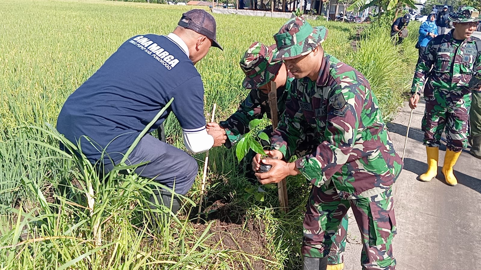 PONOROGO,BUSERJATIM.COM GROUP,-Anggota Koramil Tipe B 0802/17 Pulung, Kodim 0802/Ponorogo melakukan penanaman anakan bibit pohon bertempat di sepanjang kanan dan kiri jalan Desa Kesugihan Kecamatan Pulung Kabupaten Ponorogo, Kamis (05/02/2026).