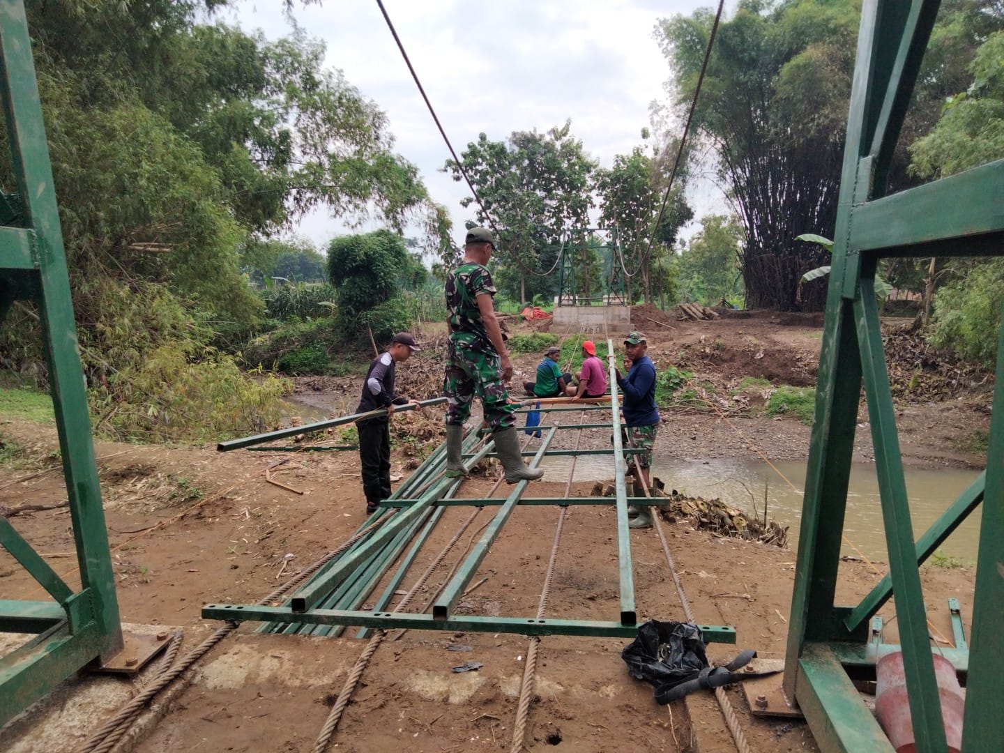 PONOROGO,BUSERJATIM.COM GROUP,-Proyek pembangunan Jembatan Petintis Garuda yang ada di wilayah Kodim0802/Ponorogo tepatnya di Desa Jalen Kecamatan Bolong Kabupaten Ponorogo hingga hari ini masih terus dikebut, Sabtu (07/02/2026).