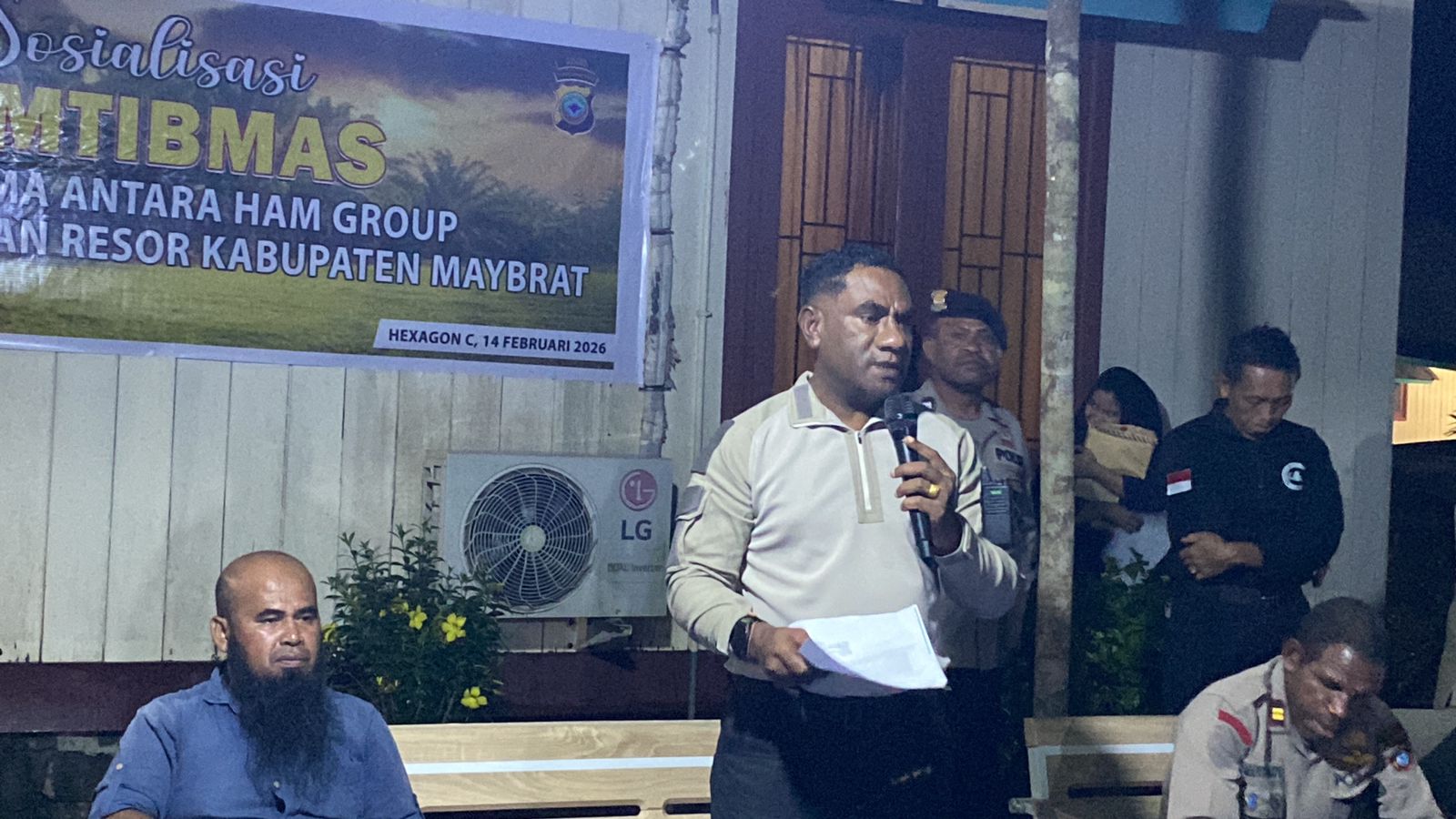 MAYBRAT, BUSERJATIM.COM GROUP – Kepolisian Resor Kabupaten Maybrat melaksanakan kegiatan Sosialisasi Kamtibmas kerja sama antara Ham Group dengan Polres Maybrat yang berlangsung di Perumahan Mill Hexagon Blok C PT. PMP. Distrik Kais Kabupaten Sorong Selatan, Sabtu (14/02/2026).