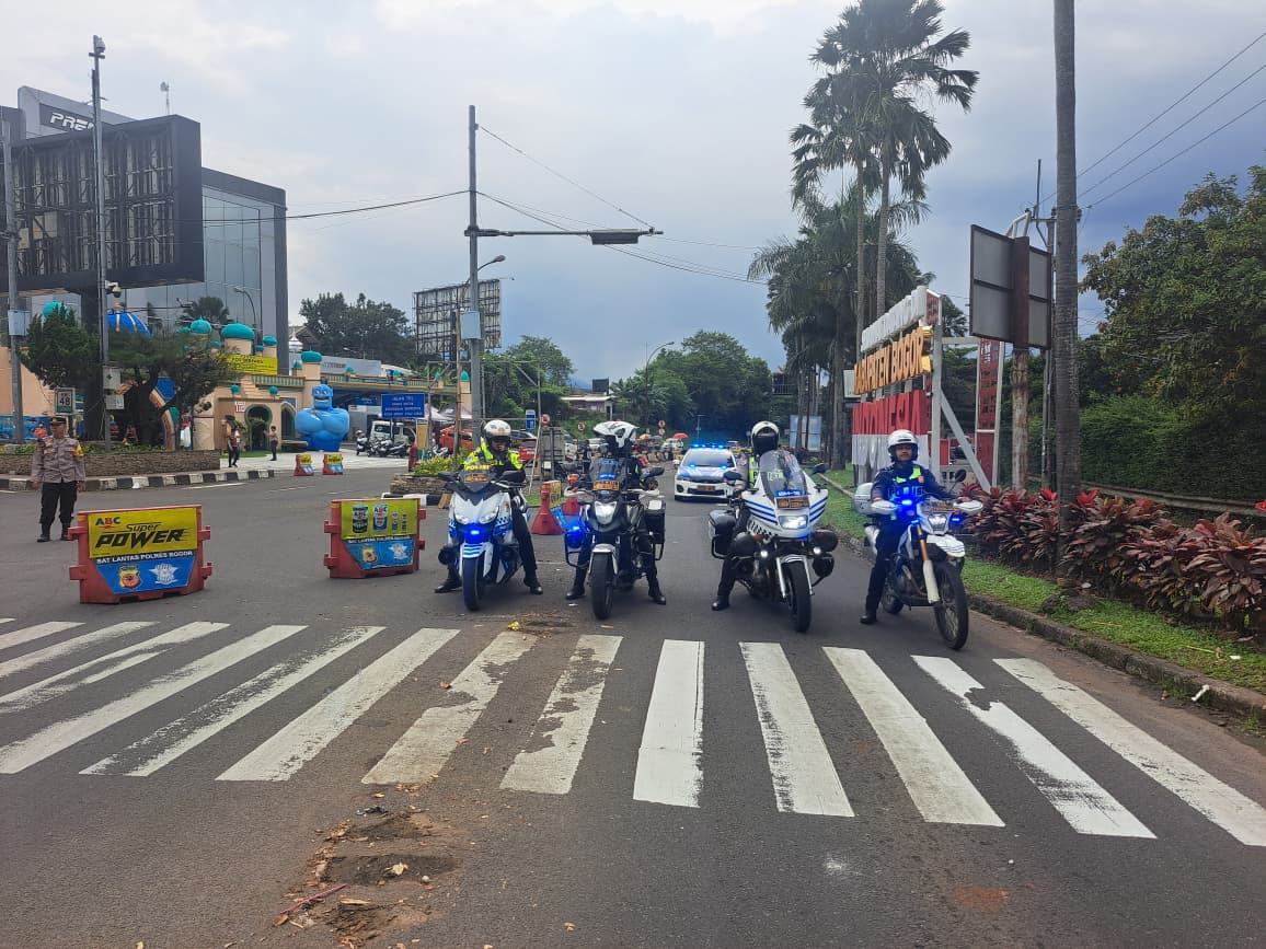 Bogor – Pada Hari H Lebaran, Satuan Lalu Lintas Polres Bogor memberlakukan rekayasa lalu lintas sistem one way di jalur Puncak sebagai upaya mengantisipasi peningkatan volume kendaraan yang signifikan.