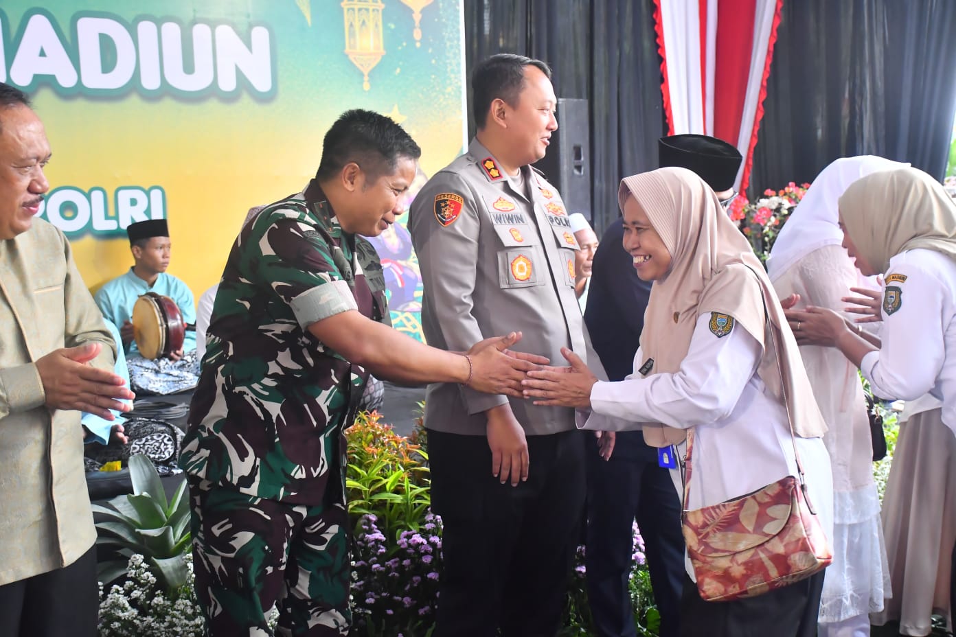 Kegiatan halal bihalal tersebut dihadiri oleh jajaran Forkopimda Kota Madiun, termasuk Komandan Kodim 0803/Madiun, Letkol Inf I Nyoman Adhisaputra. Kehadiran Dandim menjadi bagian dari komitmen TNI dalam menjaga soliditas dan kebersamaan lintas sektor di wilayah Kota Madiun.