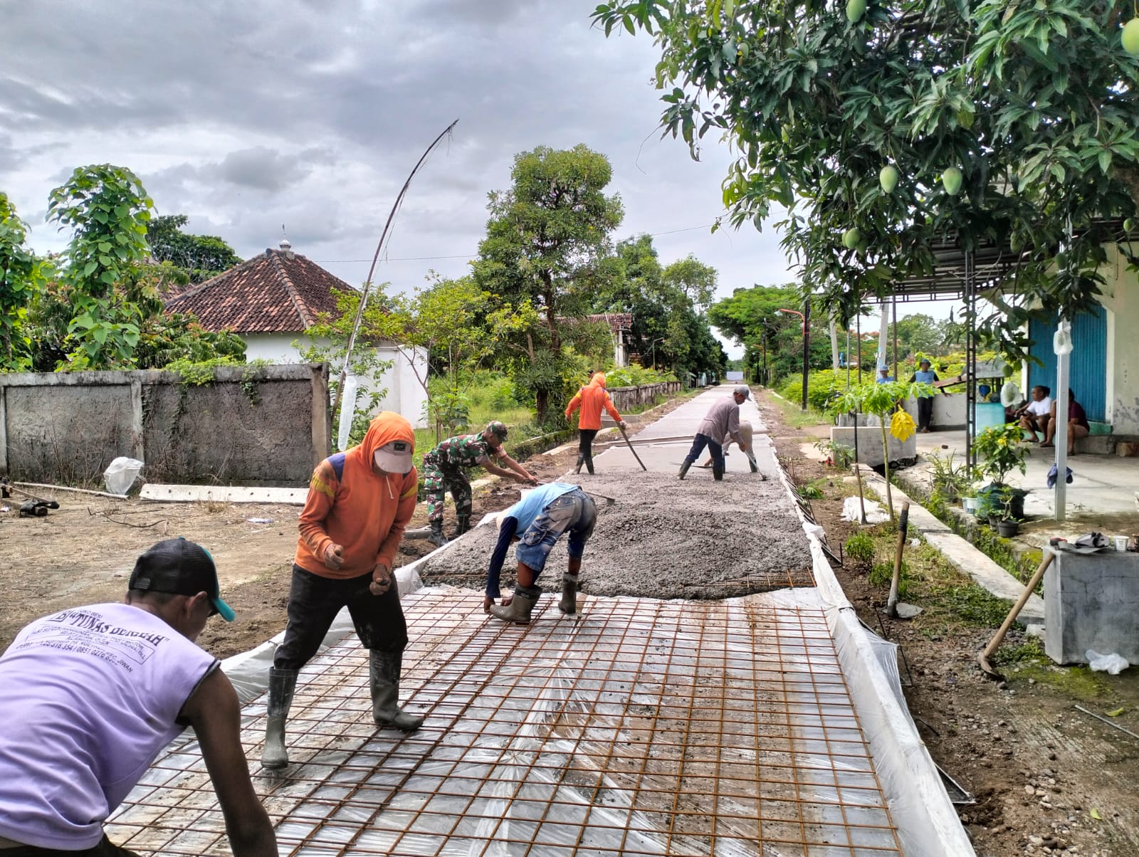 Kegiatan pengecoran jalan dilaksanakan pada hari ini dengan melibatkan berbagai elemen masyarakat, mulai dari perangkat desa hingga warga sekitar. Mereka bergotong royong, mulai dari persiapan material hingga proses pengecoran berlangsung.