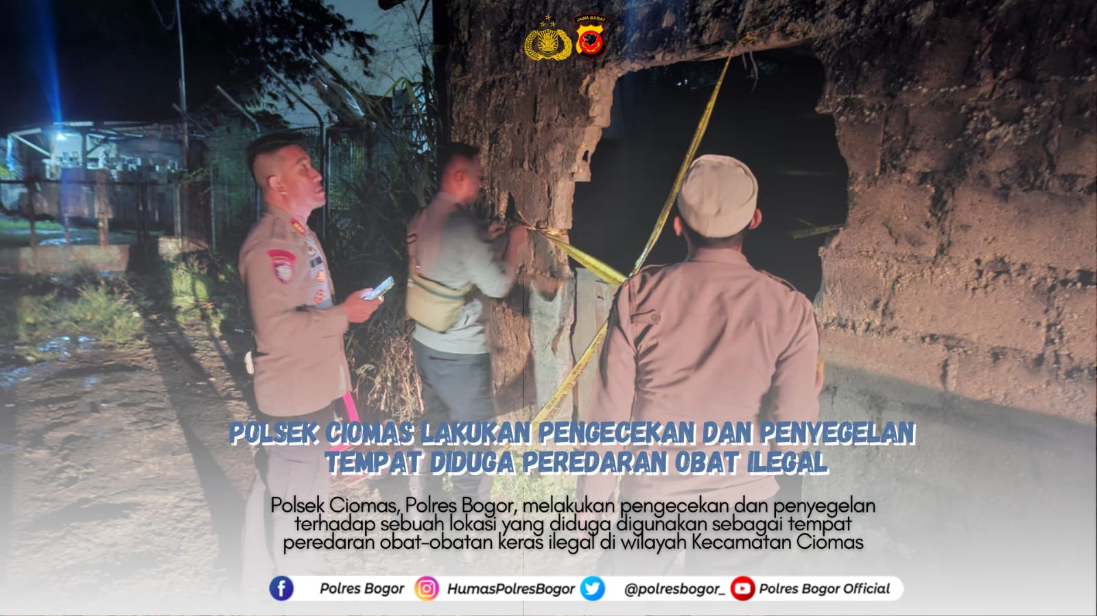 Bogor – Polsek Ciomas Polres Bogor melakukan pengecekan dan penyegelan terhadap sebuah lokasi yang diduga digunakan sebagai tempat peredaran obat-obatan keras ilegal di wilayah Kecamatan Ciomas, Kabupaten Bogor, Selasa (31/3/2026).