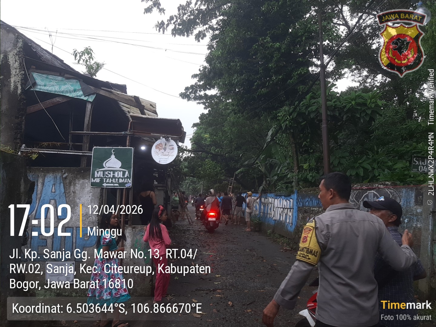 Gerak Cepat, Bhabinkamtibmas ‎Polsek Citeureup Polres Bogor Monitoring Akibat Hujan dan Angin Puting Beliung di Desa Sanja dan Desa Leuwinutug